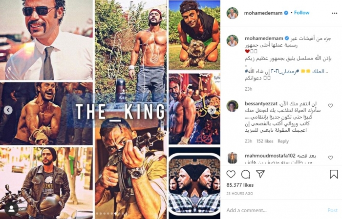 نشر الفنان محمد إمام عدة بوسترات غير رسمية لمسلسله "الملك"، الذي يخوض به السباق الرمضاني لعام 2021، عبر حسابه الرسمي بموقع "إنستجرام".