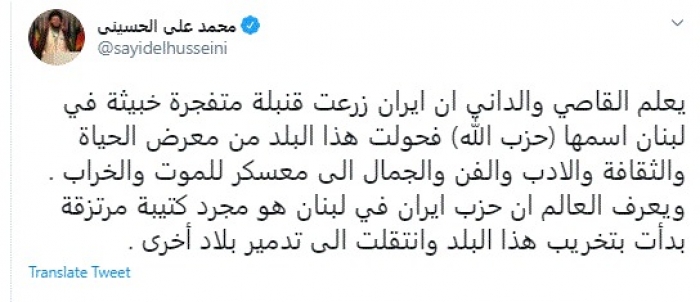 الحسيني: إيران حولت لبنان لمعسكر للخراب بسبب قنبلة حزب الله