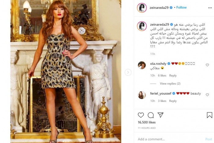 وظهرت زينة في الصور بإطلالة أنيقة، وعلقت: "اللي ربنا يرضى عنه هو اللي يرضى بعيشته وحاله مش اللي يبص لحياة غيره ويمكن تكون حياته أحسن من اللي باصص له في عيشته".