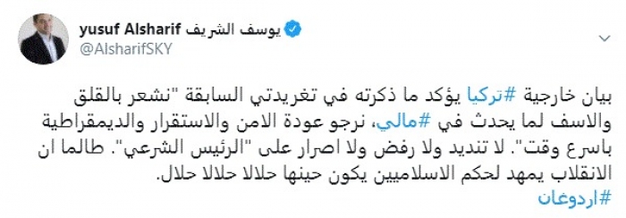 الشريف يُعلق على الموقف التركي من انقلاب مالي