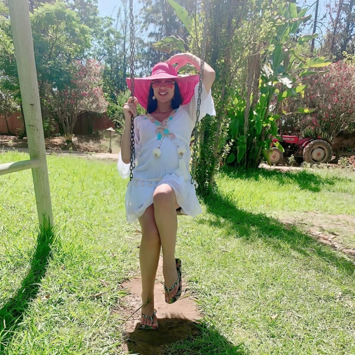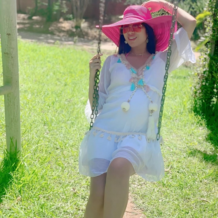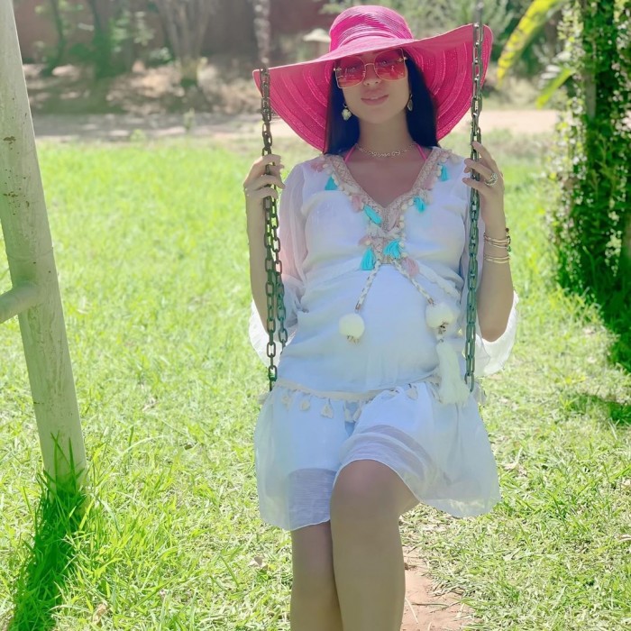 وظهرت بطمة في الصور جالسة على "مرجيحة" تستمتع بالفترات الأخيرة من حملها.