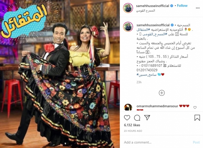 وكتب سامح، عبر حسابه على إنستجرام: "المسرحية الكوميدية والاستعراضية.. المتفائل للسنة 2 على المسرح القومي بالعتبة.. تعرض أيام الخميس والجمعة والسبت من كل أسبوع إن شاء الله في تمام الساعة 8 مساءً".