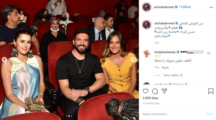 ونشرت الفنانة التونسية عائشة بن أحمد، عبر حسابها الرسمي بموقع إنستجرام، صورًا علقت عليها: "من العرض الخاص لفيلم توأم روحي".