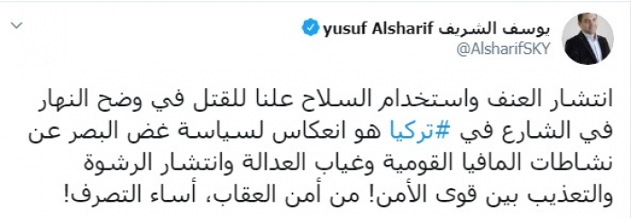 الشريف يكشف أسباب انتشار العنف والسلاح في تركيا