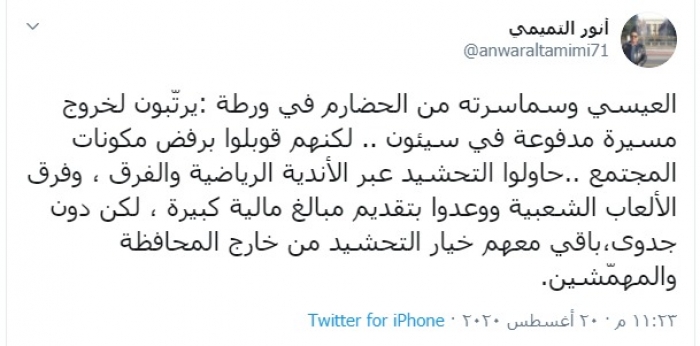 التميمي يكشف فضيحة المظاهرات المشبوهة التي يروج لها العيسى