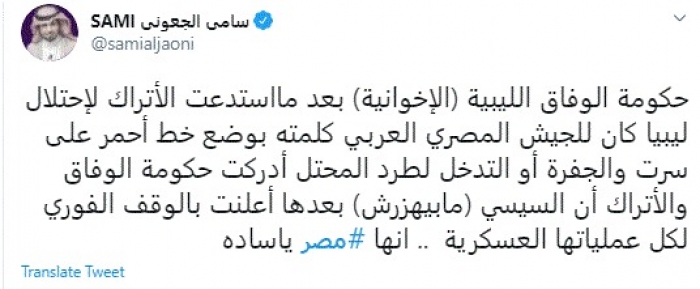 الجعوني: قرار الوفاق في ليبيا جاء بسبب خط السيسي الأحمر