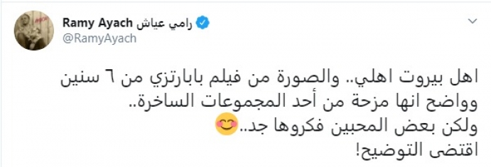 وردا على انتشار صورة له وهو يتعرض للضرب من قبل أهل بيروت، كتب المطرب اللبناني رامي عياش تغريدة عبر حسابه الرسمي على تويتر، قال فيها: "أهل بيروت أهلي، والصورة من فيلم "بابارتزي" من ٦ سنين".