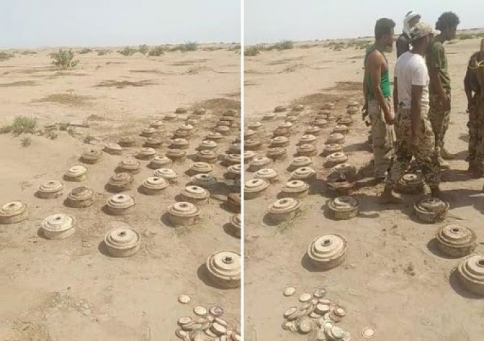 واكتشف فريق تفكيك الألغام في المزرعة 65 لغمًا مضادًا للدروع زرعته مليشيات الحوثي المدعومة من إيران، قبل اندحارها من المنطقة.