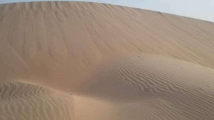 بالصور..الرمال المتحركة تعيق حركة السير بين عتق والمكلا