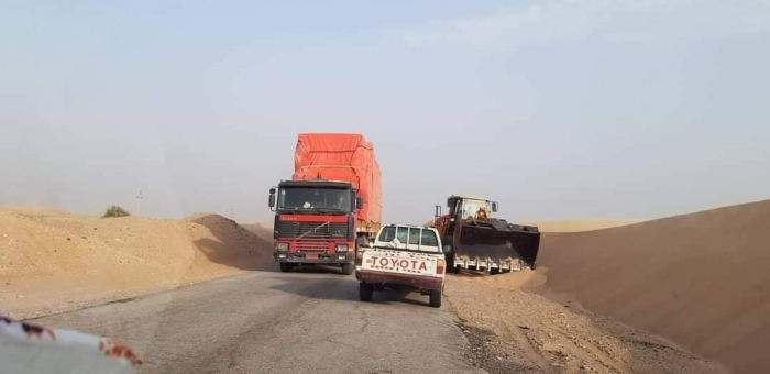 أعاقت الرمال المتحركة حركة السير في الخط الرئيسي بين عتق والمكلا، وسط غياب الحلول الجادة لإنهاء الأزمة.