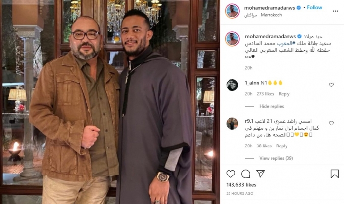 ونشر رمضان صورة تجمعهما، عبر حسابه الرسمي بموقع "إنستجرام"، وعلق :"عيد ميلاد سعيد على جلالة ملك المغرب محمد السادس حفظه الله وحفظ الشعب المغربي الغالي".