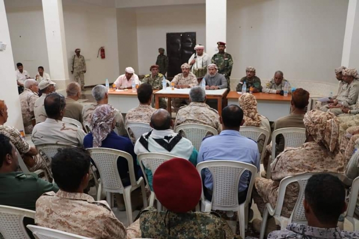 فيما حضر الاجتماع، قائد اللواء مشاة بحري العميد عبدالله أحمد السقطري، وقائد لواء الحزام الأمني العميد علي عمر كفاين، ومدير أمن المحافظة العميد أحمد سعد القدومي، وكافة قيادات الكتائب العسكرية والأمنية.
