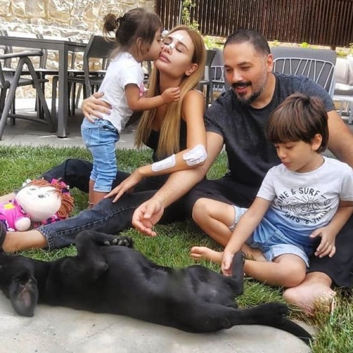 وظهرت زوجته داليدا عياش، وعلى جسدها آثار الإصابات، التي تعرضت لها في انفجار مرفأ بيروت، الذي خلف آلاف الضحايا.