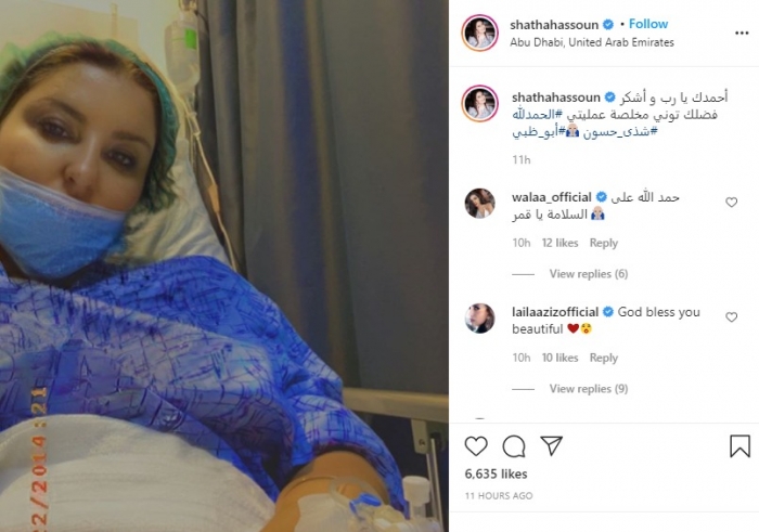 ونشرت شذى صورة لها من داخل غرفتها بالمستشفى بعد خروجها من غرفة العمليات في أبو ظبي بالإمارات العربية المتحدة، عبر حسابها الرسمي بموقع "إنستجرام"، وعلقت: ""أحمدك يا رب وأشكر فضلك توني مخلصة عمليتي، الحمد لله".