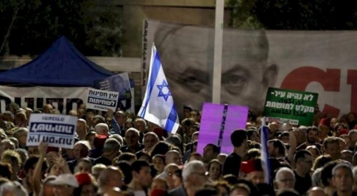 طالب آلاف الإسرائيليين المحتجين، مساء السبت، باستقالة رئيس وزراء الاحتلال بنيامين نتنياهو، من منصبه وتقديمه للمحاكمة.