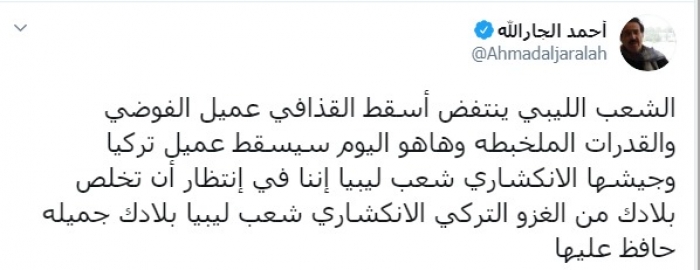 الجارالله: ليبيا تنتفض في وجه الغزو التركي