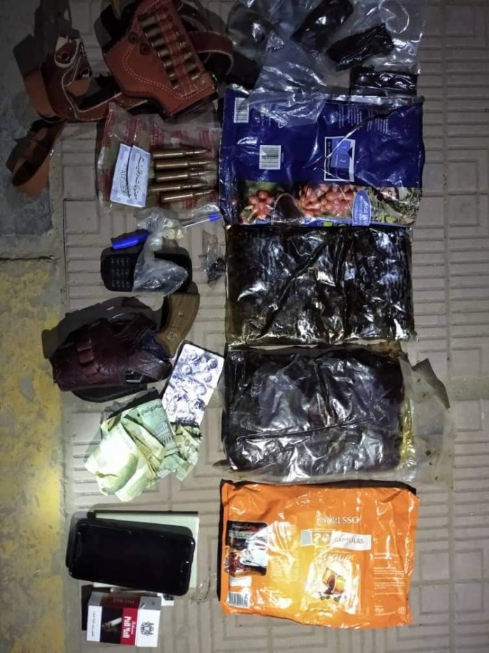فتش أفراد القوة في النقطة، مركبة المتهمين، وعثر على 2 كيلو حشيش وعددًا من الحبوب المخدرة ومسدس وذخيرة نارية.