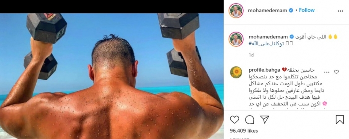 وعلق إمام على الصورة: "اللي جاي أقوى، توكلنا على الله".