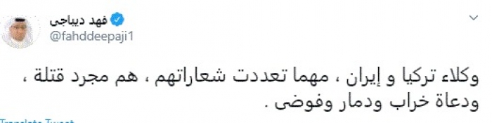 انتقد المحلل السياسي السعودي فهد ديباجي، اليوم، وكلاء تركيا وإيران في المنطقة العربية.