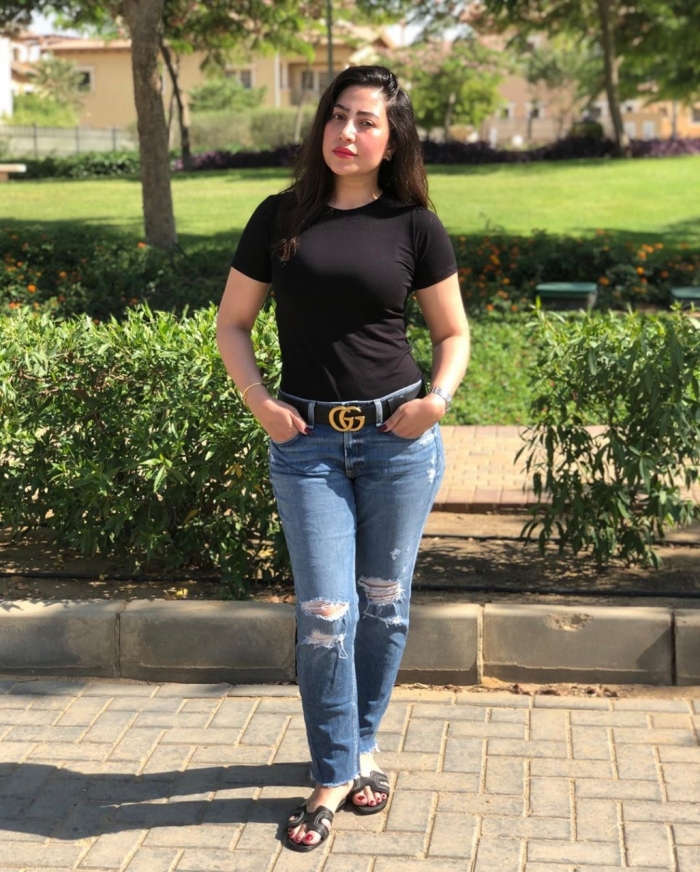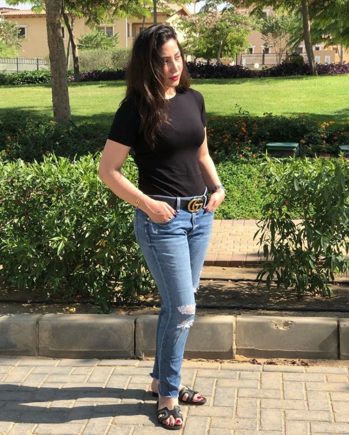 وظهرت بوسي في الصور بإطلالة كاجوال أنيقة، نالت إعجاب متابعيها.
