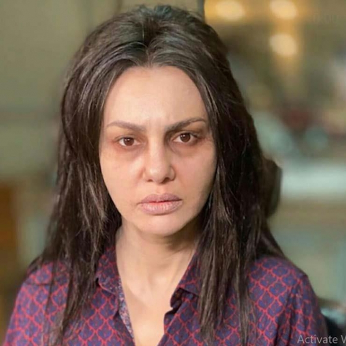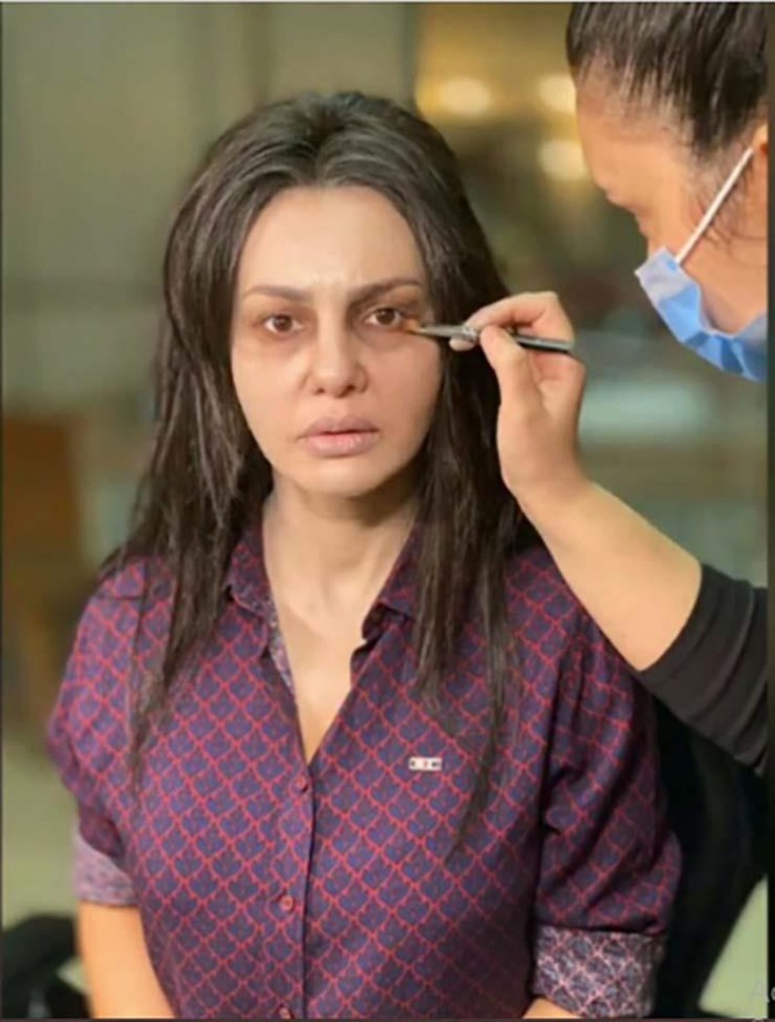وظهرت "دينا" في الصور وهي تضع مكياج الشخصية، إذ تدور أحداث المسلسل حول الجن والدجل والشعوذة- بحسب وصفها.