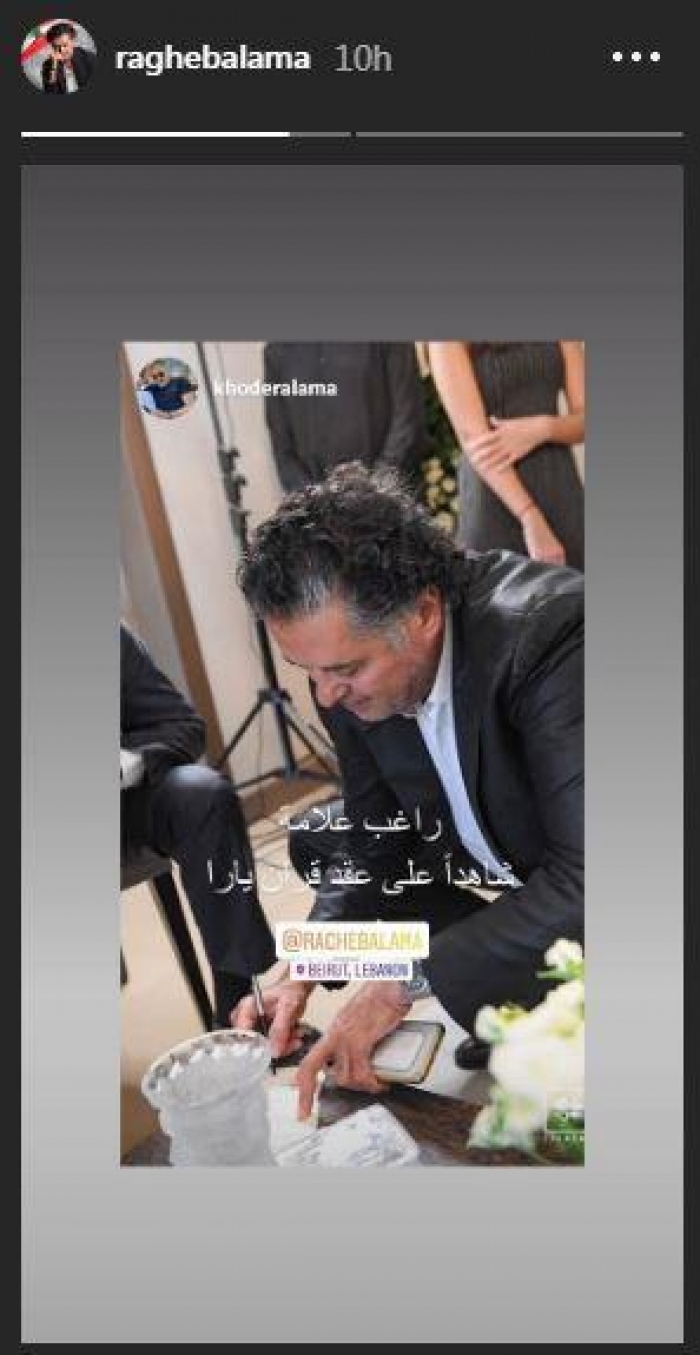 وعبر خاصية القصص القصيرة، نشر راغب صورة له أثناء توقيعه كشاهد على عقد القران.