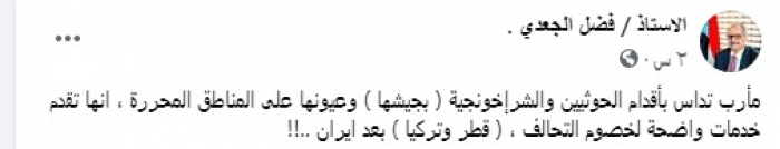 الجعدي مهاجما شرعية الإخوان: تقدم خدمات واضحة لتركيا وقطر وإيران