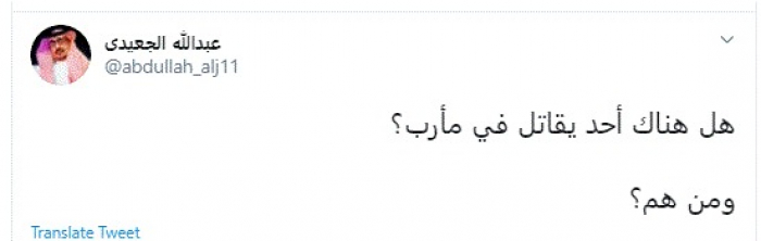 وقال في تغريدة عبر "تويتر" رصدها "المشهد العربي": "هل هناك أحد يقاتل في مأرب؟.. ومن هم؟".