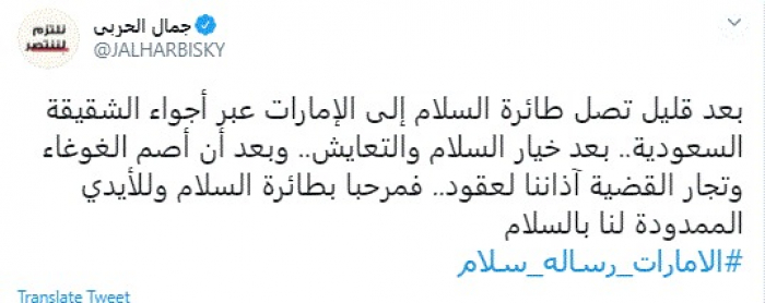 الحربي يتفاعل مع هاشتاج الإمارات رسالة سلام (تفاصيل)