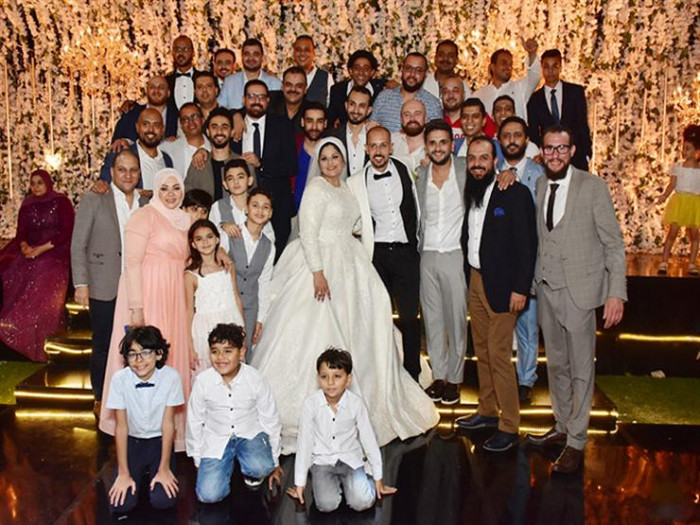 وأقيم الحفل في فندق هيلتون دريم، واحتفل العروسان بخطوبتهما في شهر فبراير من العام الماضي.