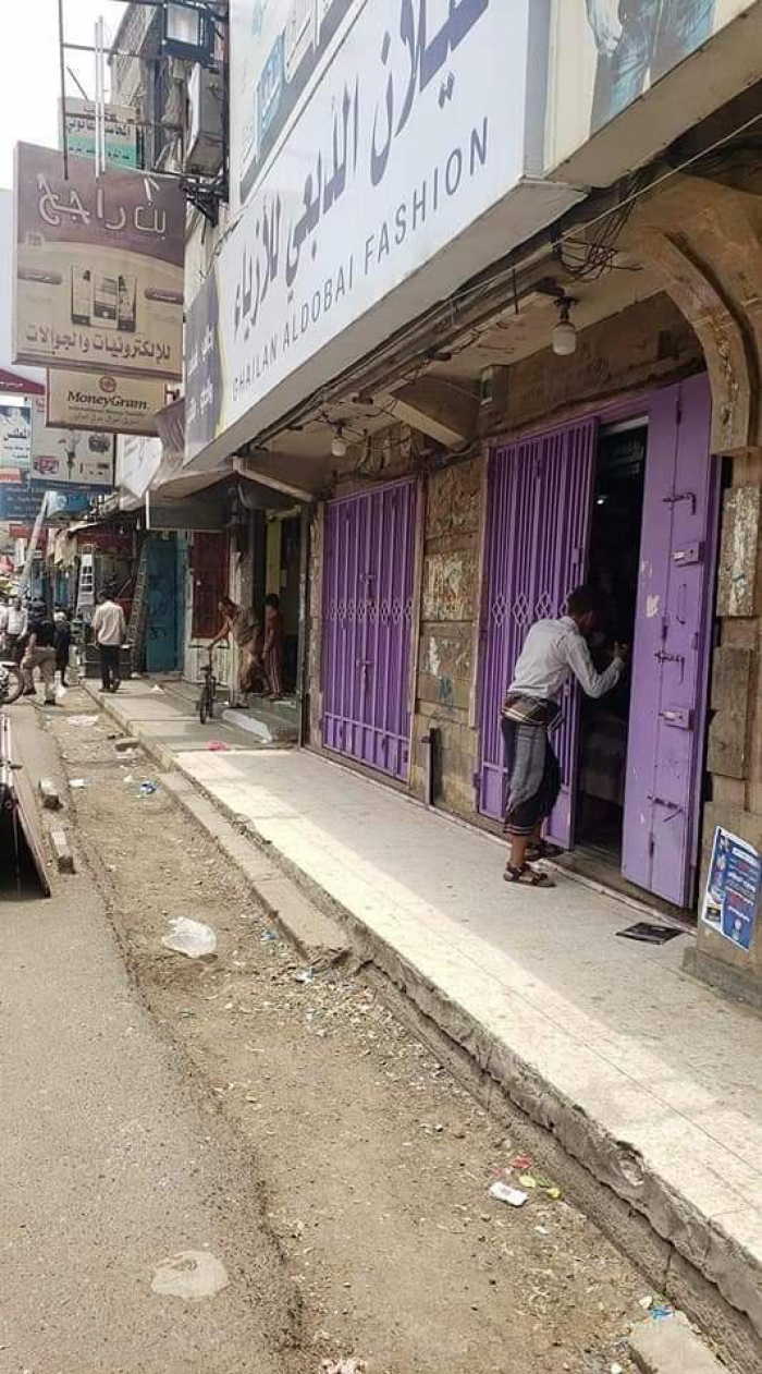 بالصور.. إضراب المحال التجارية بتعز رفضا لتدهور العملة