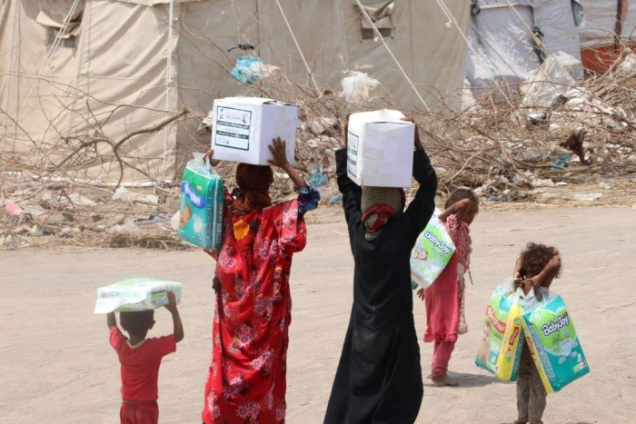وزع مركز الملك سلمان للإغاثة، اليوم الإثنين، حقائب نظافة شخصية على ألف أسرة نازحة في مخيم بني جابر، ومخيم الجشة، في مديرية الخوخة، بمحافظة الحديدة.