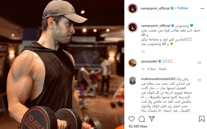 وكتب رامز، عبر حسابه على إنستجرام، وعلق: "وحشتوني .. أسف إني بعيد بقالي فترة، بس غصب عني والله.. التمارين كتير أوي ومحتاجه تركيز".