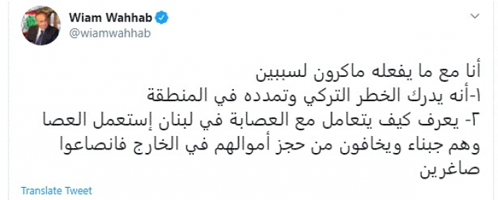 أشاد السياسي اللبناني البارز وئام وهاب، اليوم، بما يفعله الرئيس الفرنسي مانويل ماكرون في لبنان، مؤكدًا أنه يدرك الخطر التركي في المنطقة.