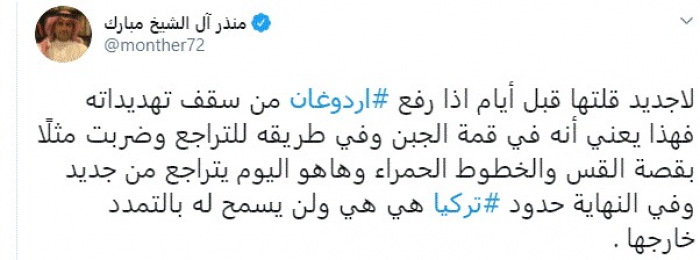 سخر المدون السعودي البارز منذر آل الشيخ مبارك، اليوم، من تراجع تركيا عن تهديداتها وإعلانها الاستعداد للحوار مع اليونان.