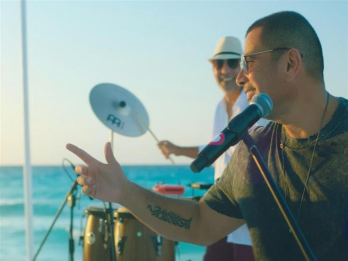 صور النجم عمرو دياب، كليب أغنيته "زي مانتِ" التي صدرت ضمن ألبومه الأخير "سهران"، مع فرقته الموسيقية في مدينة الساحل الشمالي.