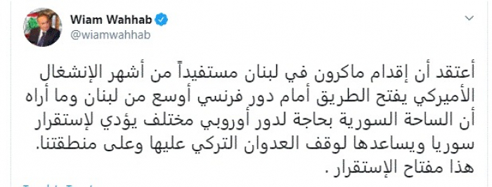 كشف السياسي اللبناني البارز وئام وهاب، اليوم، أهمية الدور الفرنسي في لبنان، مؤكدًا أن الساحة السورية بحاجة لدور أوروبي مختلف.