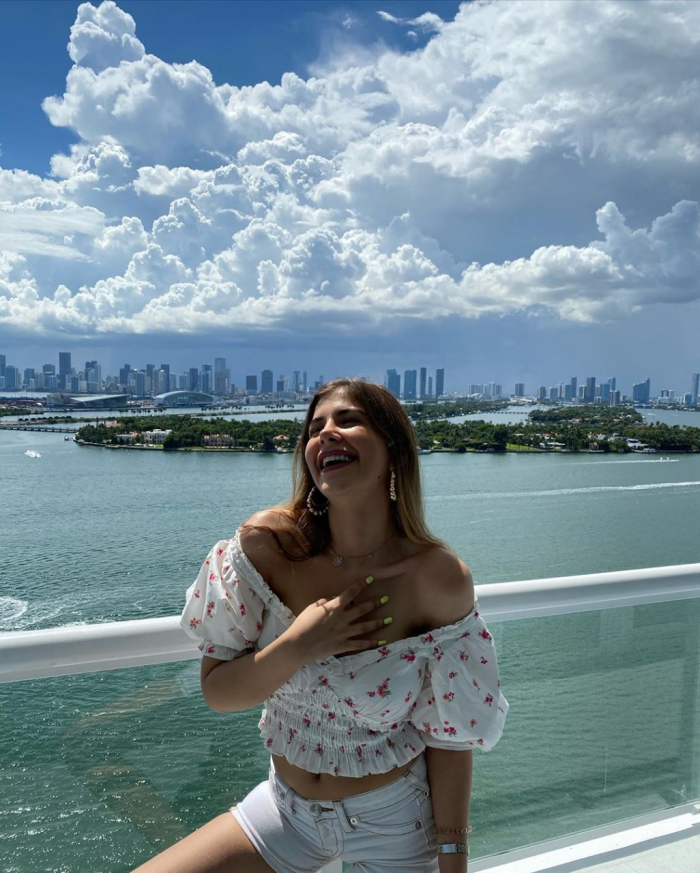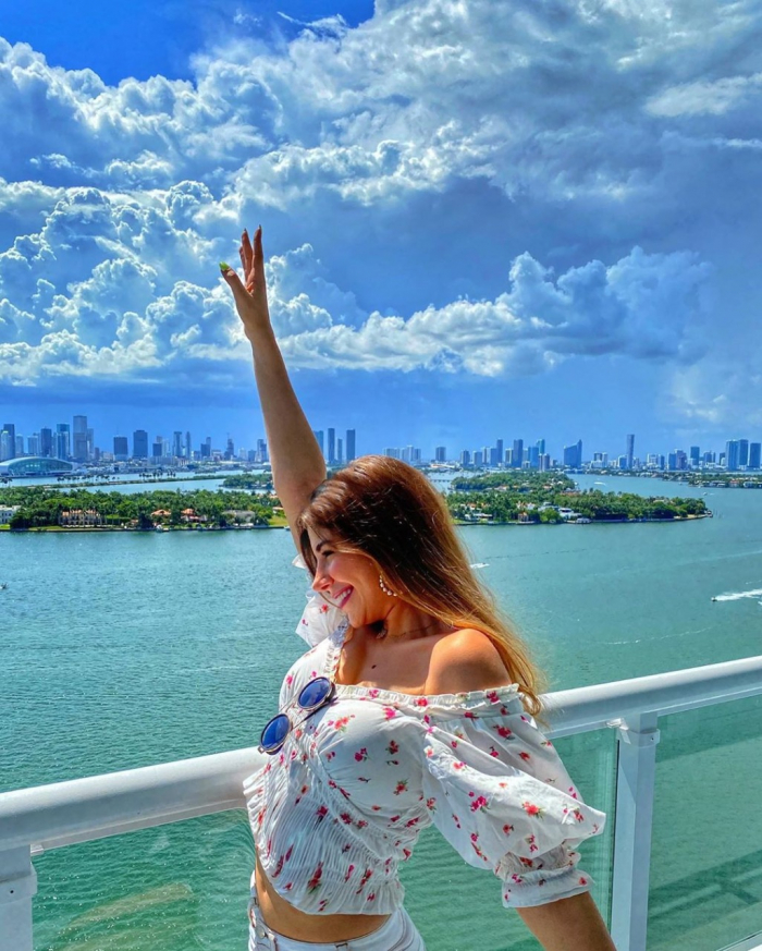 وظهرت "ملك" في الصور بإطلالة صيفية من "ميامي- فلوريدا" التي تطل على البحر، وعلقت على الصور قائلة: "أنا وإنت والبحر".