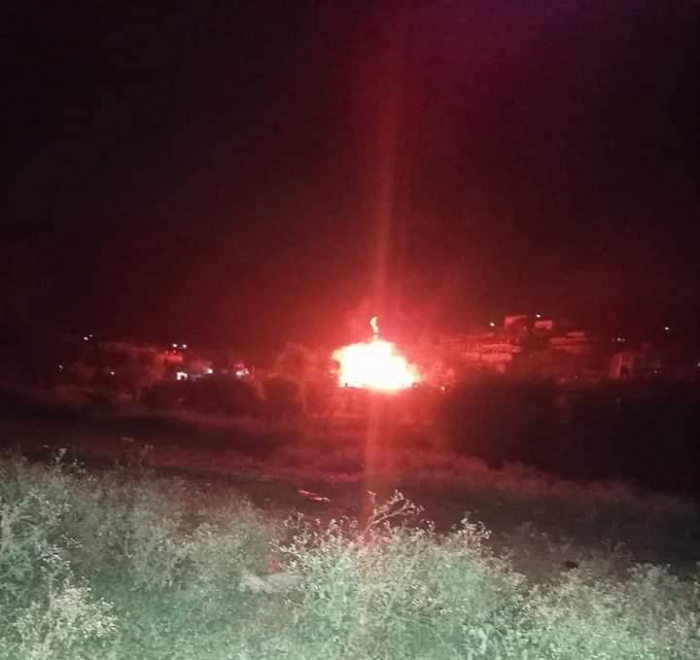 نشب حريق هائل قبل قليل في مخازن مشتقات نفطية بسوق الأحد في مديرية المعافر، جنوبي محافظة تعز.