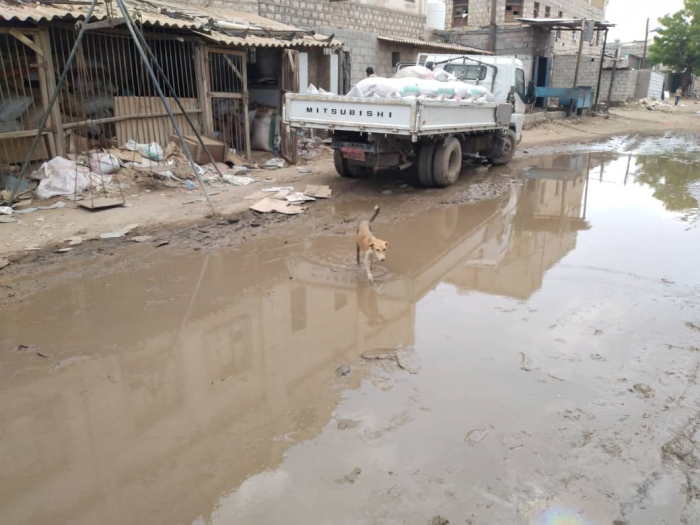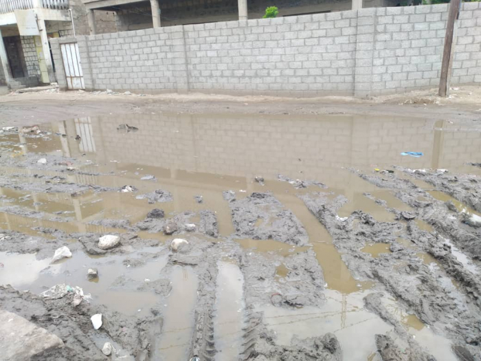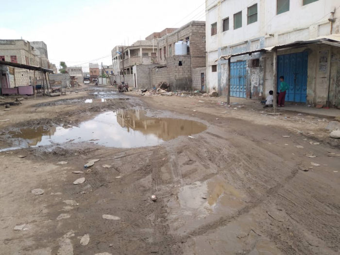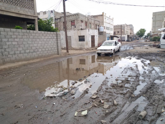 انتشرت البحيرات الراكدة في شوارع مدينة الحصن بجعار في أبين، بسبب مياه الأمطار التي شهدتها المحافظة مؤخرًا.
