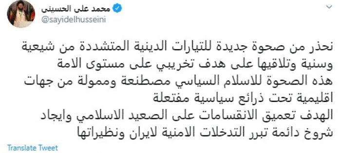 الحسيني يُحذر من صحوة التيارات الدينية المتشددة في المنطقة