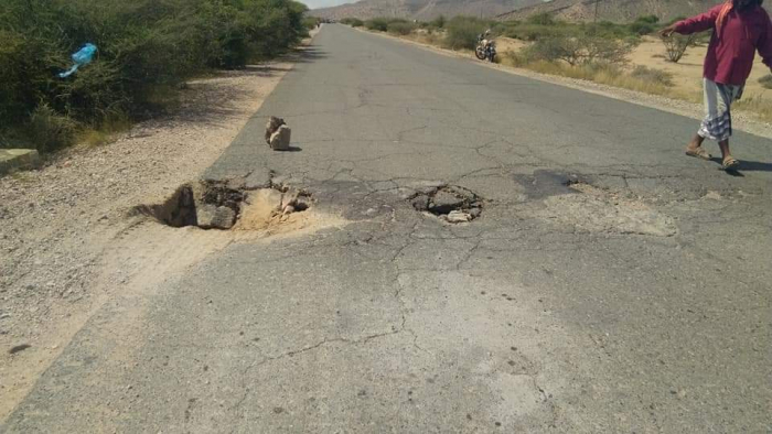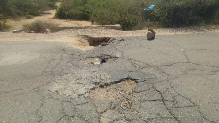 شهد الخط الأسفلتي الدولي الرابط بين منطقة أمصره ومدينة العين في أبين، هبوطًا أرضيًا.