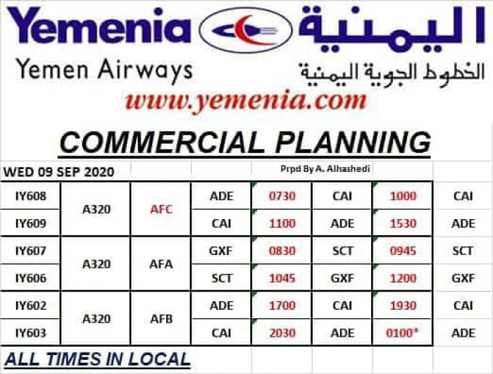 تنطلق غدًا الأربعاء، ثلاث رحلات من مطاري العاصمة عدن وسيئون الدوليين، إلى مطاري القاهرة وسقطرى.