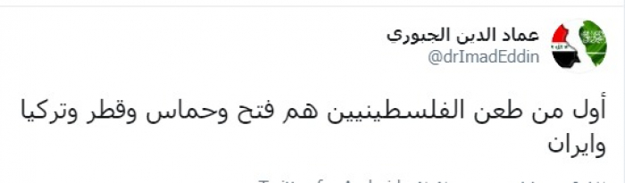 وكتب عبر تغريدة له على "تويتر" رصدها " المشهد العربي": "أول من طعن الفلسطينيين هم فتح وحماس وقطر وتركيا وإيران".