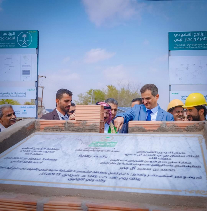 افتتح محافظ عدن أحمد حامد لملس، اليوم الأحد، مشروع حفر وإعادة تأهيل عشر آبار مجهزة بالطاقة الشمسية في حقل المناصرة، وذلك بتمويل من البرنامج السعودي للتنمية والإعمار.
