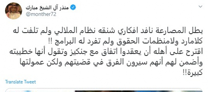 انتقد المدون السعودي البارز منذر آل الشيخ مبارك، اليوم، صمت المنظمات الحقوقية على إعدام السلطات الإيرانية للمصارع نويد أفكاري.
