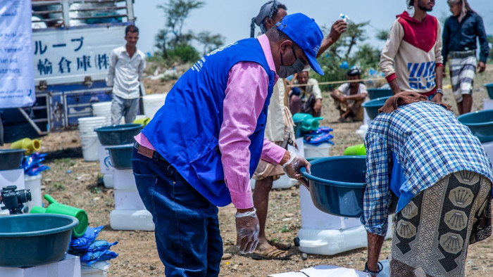وقالت في تغريدة على حسابها بتويتر، إن المساعدات توزعت في محافظتي أبين وتعز، مشيرة إلى أن الحفاظ على النظافة يخفض خطر كورونا.