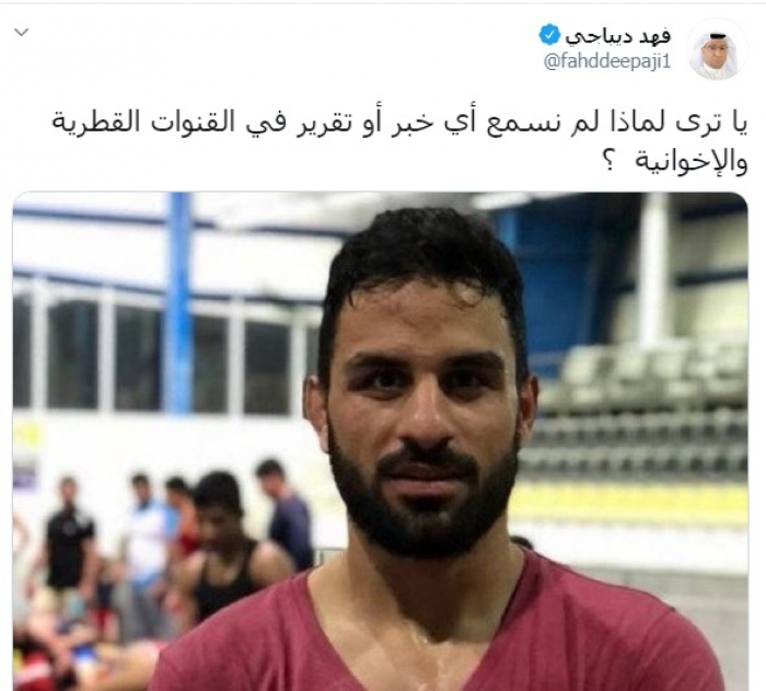 وكتب عبر تغريدة له على "تويتر" رصدها " المشهد العربي": "يا ترى لماذا لم نسمع أي خبر أو تقرير في القنوات القطرية والإخوانية ؟".