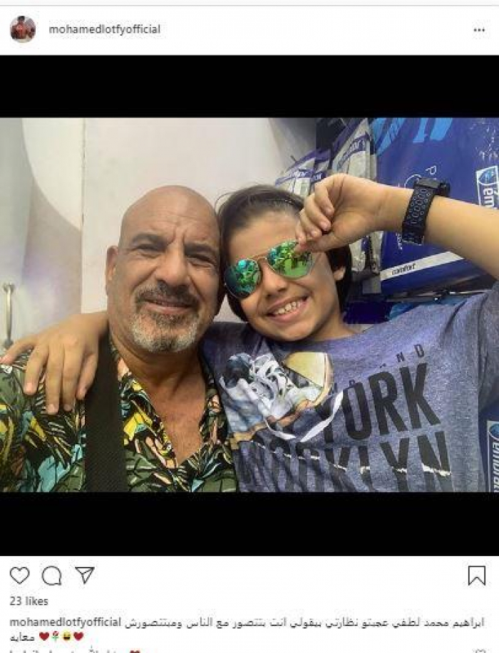 ونشر "لطفي" صورته مع نجله، وعلق: "إبراهيم محمد لطفي، عجبته نظارتي، بيقولي إنت بتتصور مع الناس ومابتتصورش معايا".