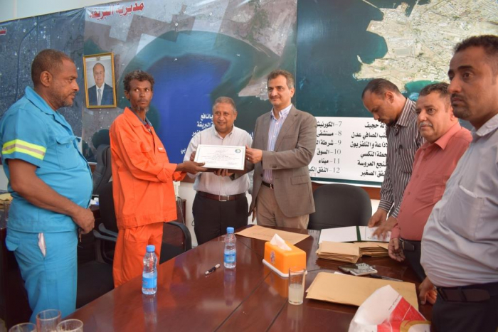 بالصور.. محافظ عدن يكرم عمال نظافة لمواقفهم الوطنية والإنسانية